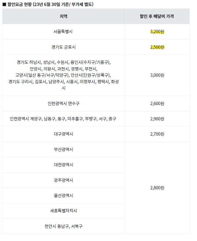 사장님 부담 배달비는 지역별 평균배달거리, 배달비, 배달팁 등 배달환경 및 시장가격을 고려해 탄력적으로 배민이 상시 할인을 적용하는데요 할인금액은 기간 및 지역에 따라 변동될 수 있다고 하네요